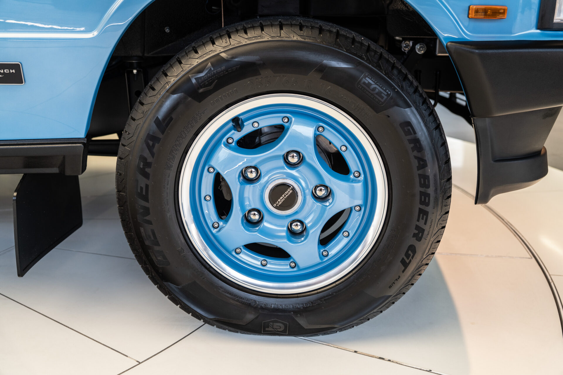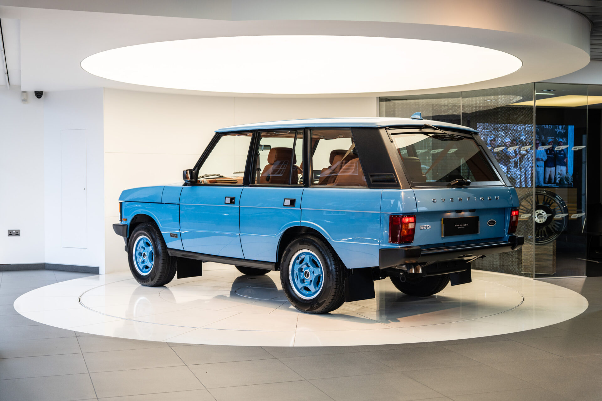 Finished in Oman Desert Sky, bespoke to Overfinch Heritage, there are several distinct Overfinch enhancements that have been crafted exclusively for this car. The 16″ Nevada alloy wheels are a homage to the original wheel design and have been colour-coded to the paintwork for a classic aesthetic. Overfinch signature bonnet and tailgate lettering has been fitted so that onlookers know immediately that this is no ordinary Range Rover classic. Updated to the standards of today is a set of high performance LED headlights for improved visibility.