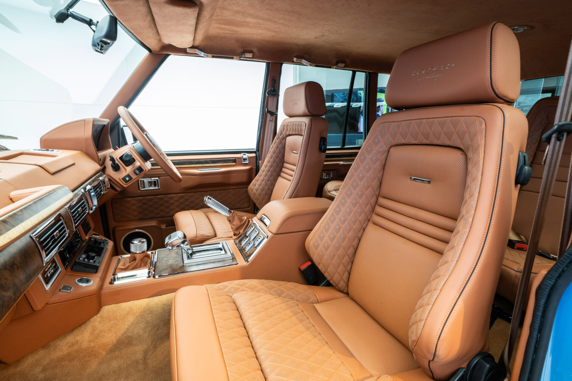 The vehicle is finished in a bespoke Oman Desert Sky paintwork and features a number of contemporary upgrades, from Recaro seats trimmed in Overfinch Heritage quilted tan leather, to a fully upgraded speaker system, making long journeys a pleasure.