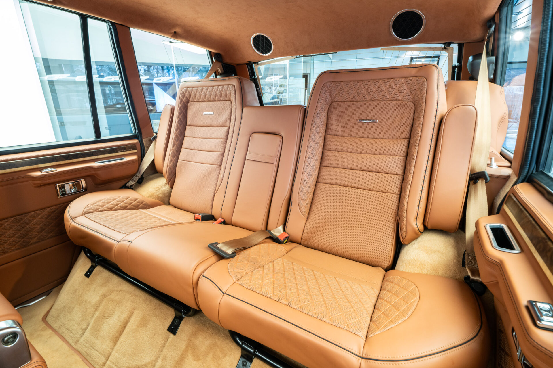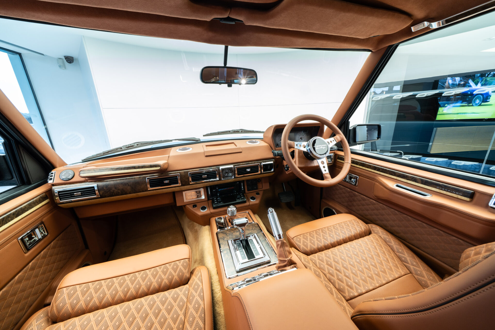 The interior now features Recaro Sport front seats that have been expertly trimmed in premium tan leather with Overfinch diamond quilted bolsters and stitched headrests. Overfinch Heritage knurled brightwork features throughout the interior, including the gear selector, low range selector, handbrake, door handles, grab handles and door locks. A beautiful burr walnut veneer brings a heightened sense of luxury in the cabin, while the bespoke Mota-Lita steering wheel reminds you that this is a true classic.